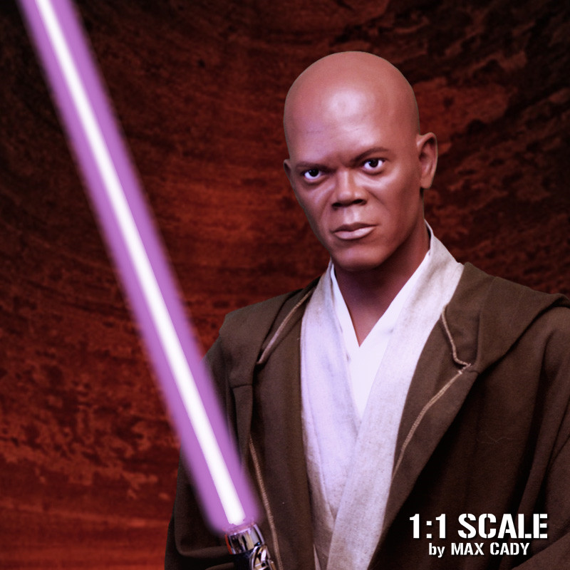 正面を向いた胸像でも、その人の首の傾げ方、とかの癖を見抜かないといけない。たとえば、サミュエル・L・ジャクソンは、向かって左に首を傾ける癖があるが、それをするだけで、その人らしい雰囲気が出る。ちなみに坊主頭でない場合は、手順3は下からではなく後頭部に穴を開けて目を動かすようにした方が楽である(ウィッグで隠れる)が、私は後頭部には穴を開けずに作っている。