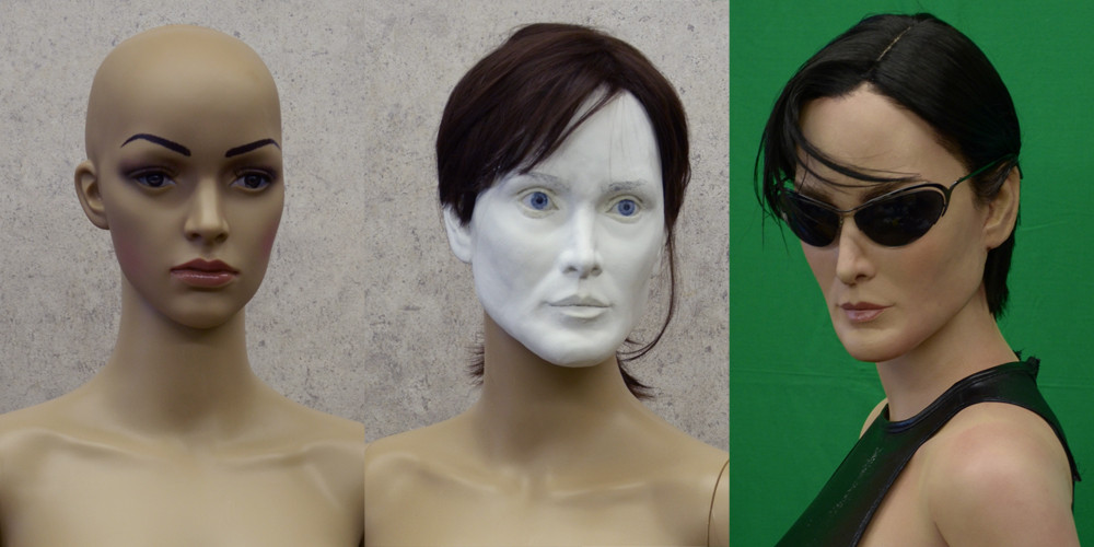 首の付け根を見せないくていいような場合は、こういうマネキンも使用可能である。ポーズに制限はあったが、首は回るし、露出の多い肌を塗装だけで流用した例である。