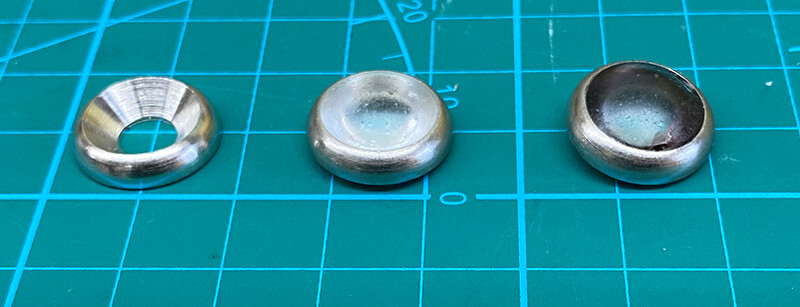加工前の写真を撮り忘れたが、右のジャイロスコープみたいなベアリングをモノタロウで購入。自動調心玉軸受と言うらしいが、まぁ普通のホームセンターには無いわね。これの玉を取り出して4個以外はバーナーで酸化させて黒くした(上右の映像風に)。