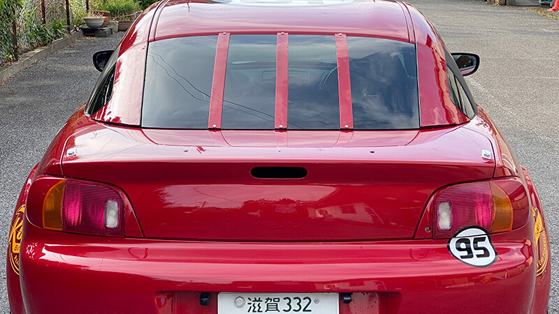 もちろんトランクもそのまま使えるし、車検も通るし、200km/hに耐える強度を備えている(はず)。ハイマウントストップランプは純正のまま、さらに最高の位置にリアカメラを装備したので、デジタルインナーミラーの視界もばっちり。