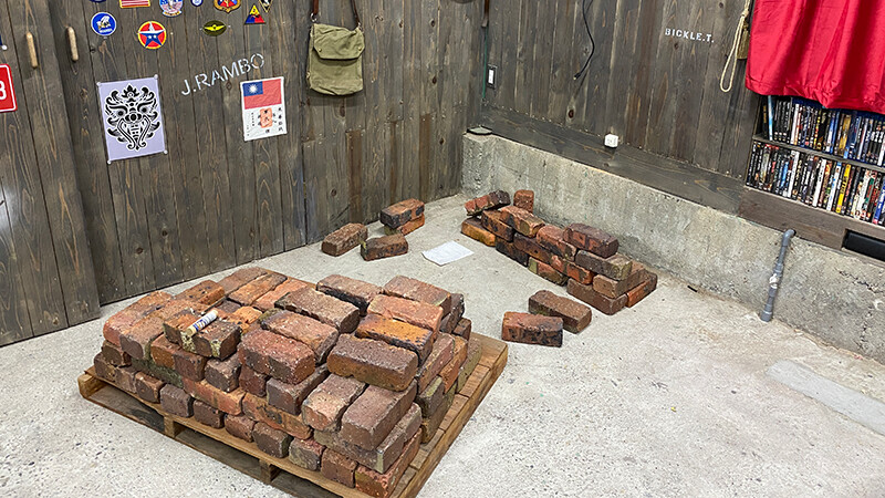 まず事務所の外壁のリフォームで使ったレンガ風ブリックを考えたが、コーナー用とか計算したら本物より高くなってしまうので、本物のレンガを積むことにした。
