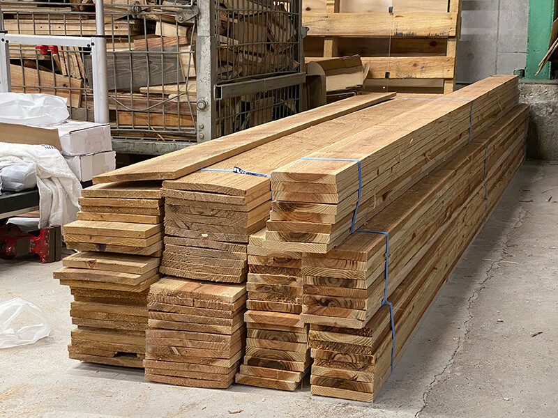 設計では2.5x1.25mのドアが8枚必要で、写真の材料で4枚半分。しかし、この半年は何屋さんかわからないほど端材が出る。針葉樹が燃やせる薪ストーブが欲しいなぁ。