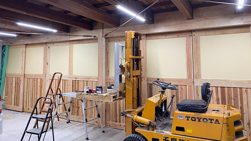 明日から寒波がやってきてようやく冬らしくなりそうだが、このコロナ禍で大掃除した倉庫1階部分には仕切りがなく冬は極寒。昨年まではビニールカーテンをしていたが、カフェ/スタジオ化計画の一環で仕切りを作ることにした。