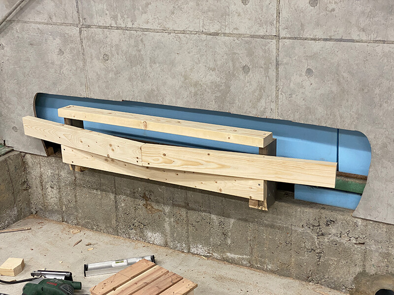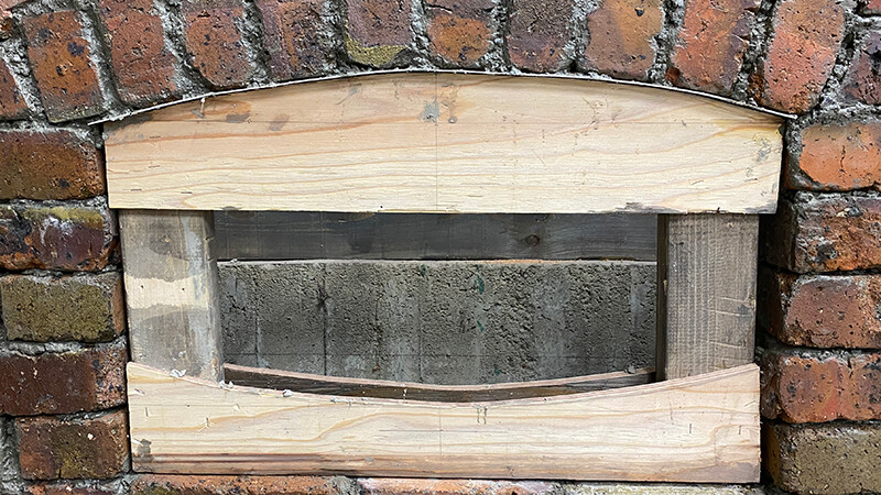 アーチ部分は構造力学とか調べておらず、テキトーに端材で木枠を組んで積んだだけ(ちょい不安)。