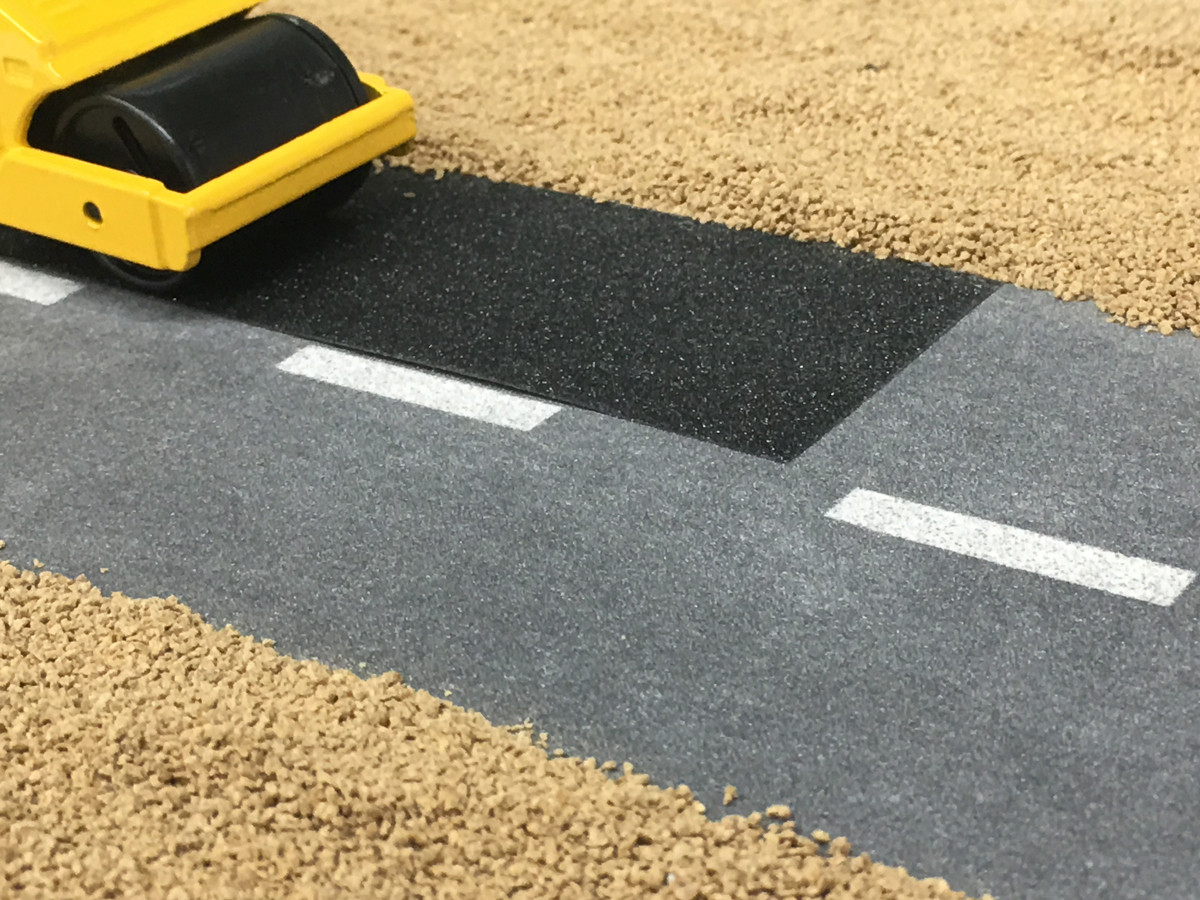 ベビーパウダーを使えば、白華したアスファルトの再現も簡単。凹凸がペビーパウダーや極小の砂埃を噛んで自在に色合いの調節が可能。