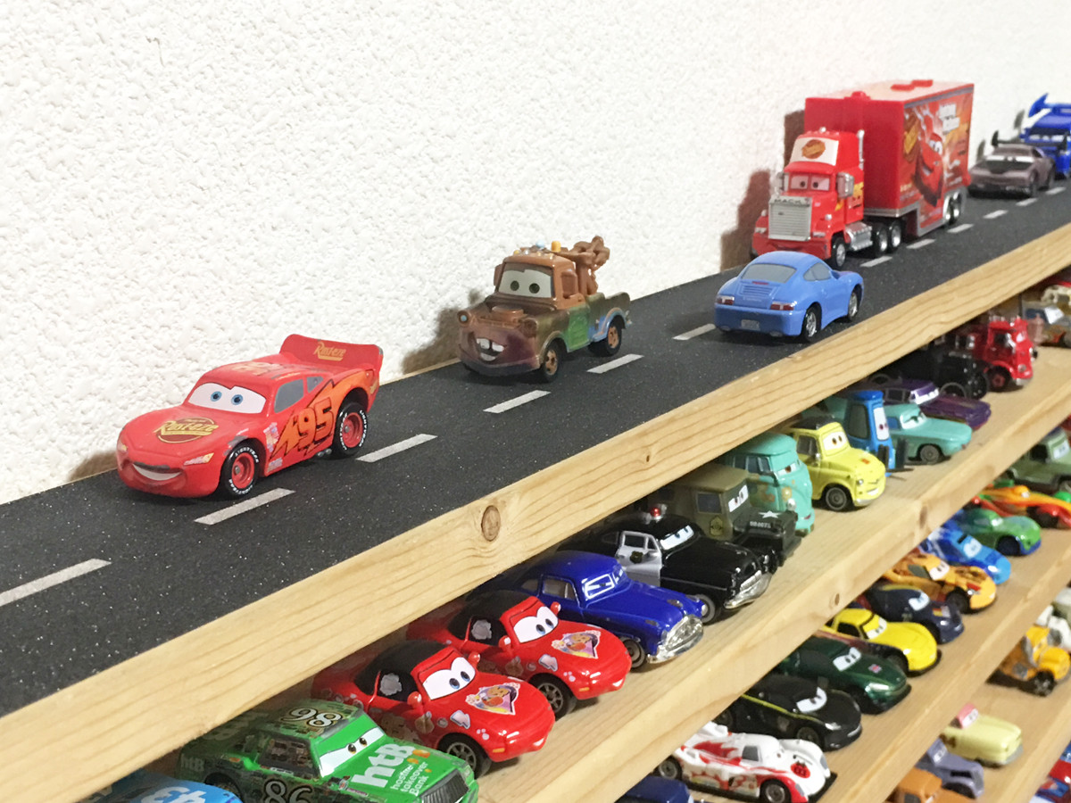 80mm幅は1x4や2x4材に貼るのに最適で、DIYでミニカー収納棚を作るのもお勧め。