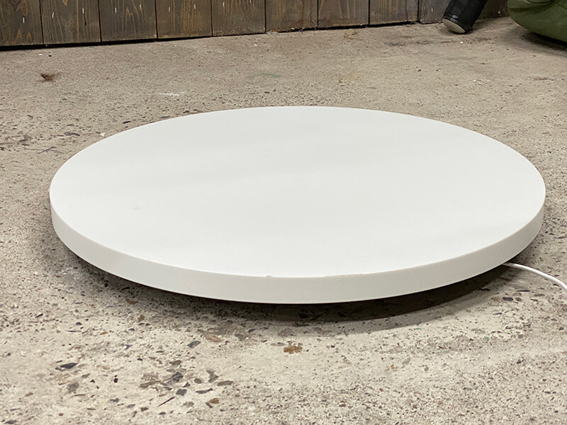 マネキンを回転台に乗せて撮影してみたいなぁと思いついた。直径60cm、80kgまで、Amazonならそんなに高くない。で、これに今回は鉄棒ではなくアクリルのハーフパイプを立てて固定しようと。実は鉄棒は結構曲がるので不安定さが増すという判断。