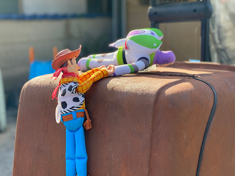 今は子供向けのおまけつき。右左折すると、ウッディが揺られてピンチになる。