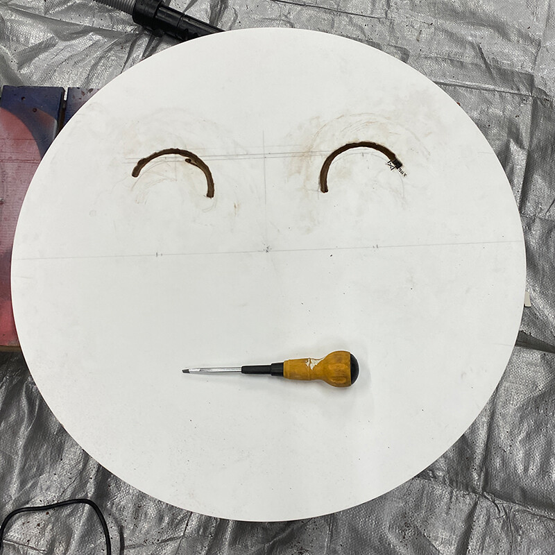 これまでの撮影から靴の距離を平均化し、重心を真ん中にして、穴開け。